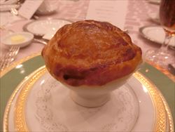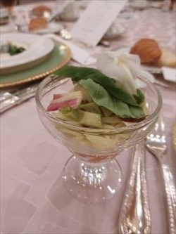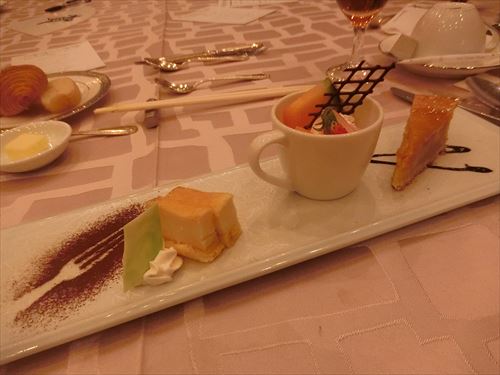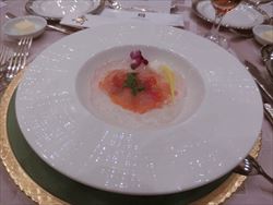 | Menu スモークサーモン・トマトの赤ワイン煮 マッシュルームのスープ アンクルート カッペリーニとアボガドの冷製 北海道産真鱈とホタテと冬野菜のチャウダー仕立て 国産牛フィレステーキ マデラワインソース クロワッサンとホテルバケット チーズケーキブリュレとフルーツタルト コーヒー又は紅茶 |