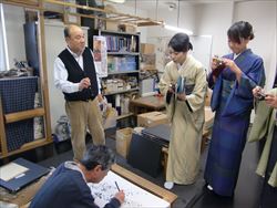 11月10日(日) 京都の染色作家 津室 朱光先生の工房へ見学に行ってきました。見学後には 「京柿」さんにておいしいランチを頂き、祇園花見小路を散策してきました。