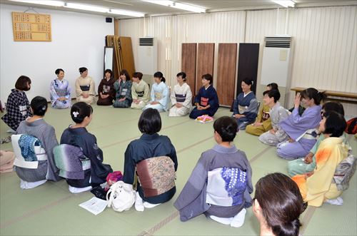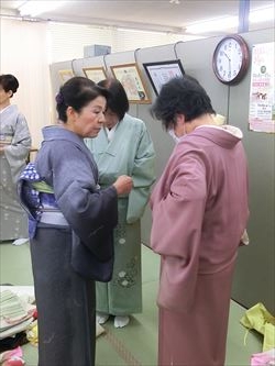 11月13日(日) 11月15日は『きものの日』なのですが、それにちなんで、全国一斉に受講料無料の『きもの着付け教室』が開催されました。こちらはその時の様子です。皆さんたいへん熱心に受講されていました。