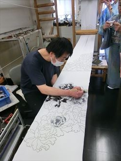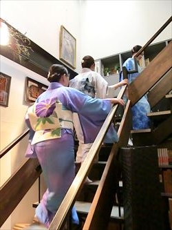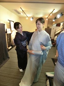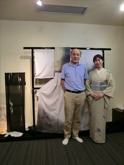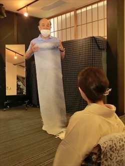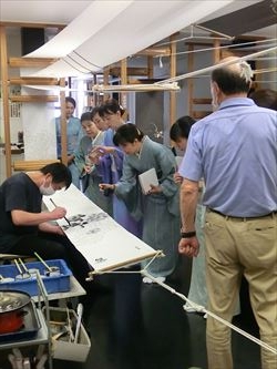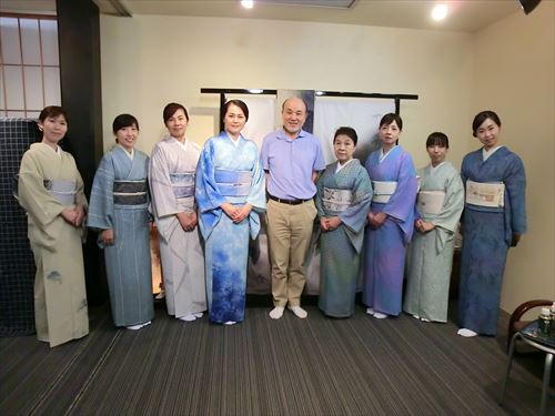 06月19日(月) 京都の染色作家 津室 朱光先生の工房まで産地研修に行ってきました。研修後には 「寿司・和食 がんこ」さんにておいしいランチを頂き、高瀬川二条苑に行ってきました。