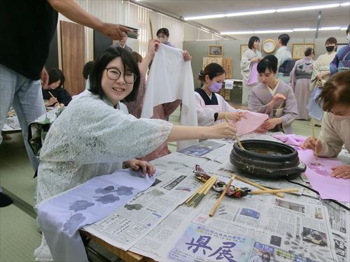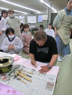 6月03日(月)染織作家「城戸 壇上」先生を講師にお迎えして、ろうけつ染め体験を催しました。